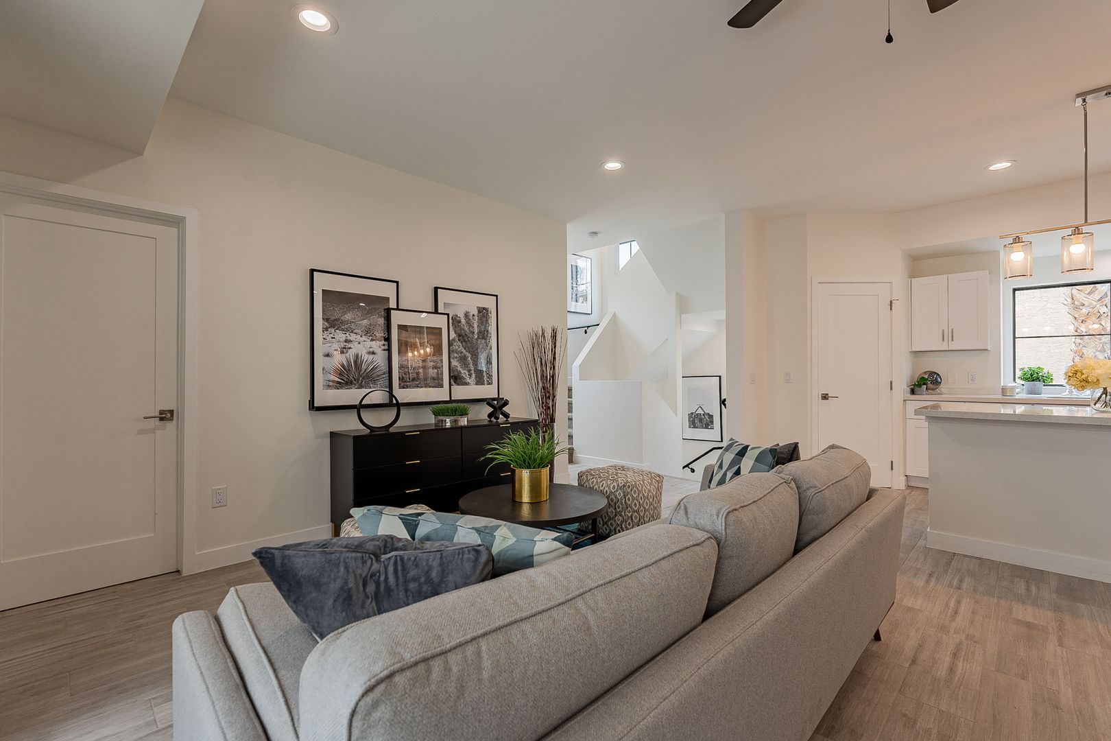 2nd level has an Eat-in kitchen with beautiful quartz counters, stainless steel appliances, a gas stove, a large pantry, and plenty of cabinet space. The dining room and living easy have easy access to a private balcony.