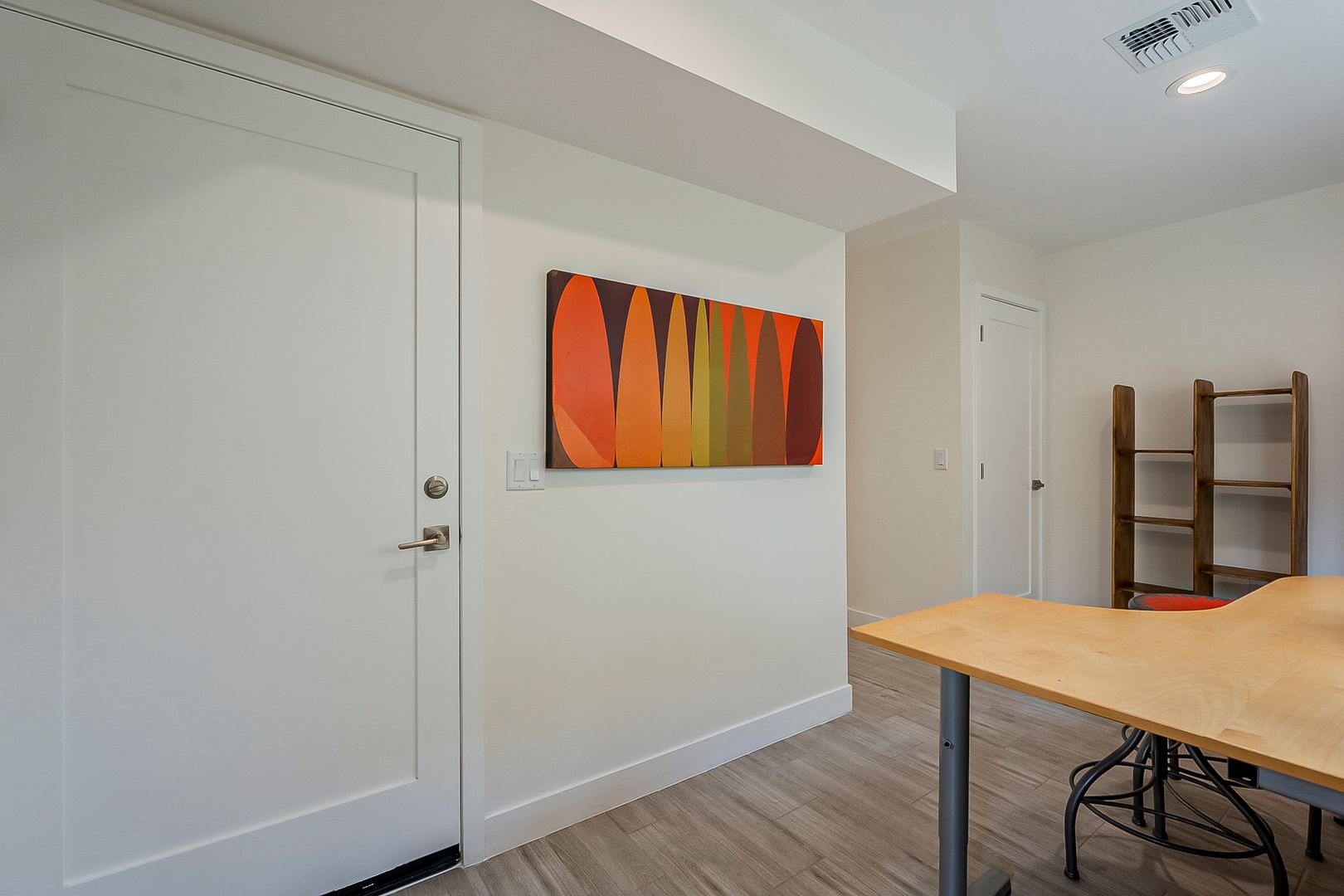 1st level- has a small area that can be used as a small office/mudroom/bicycle storage this area leads to a private back outdoor patio.