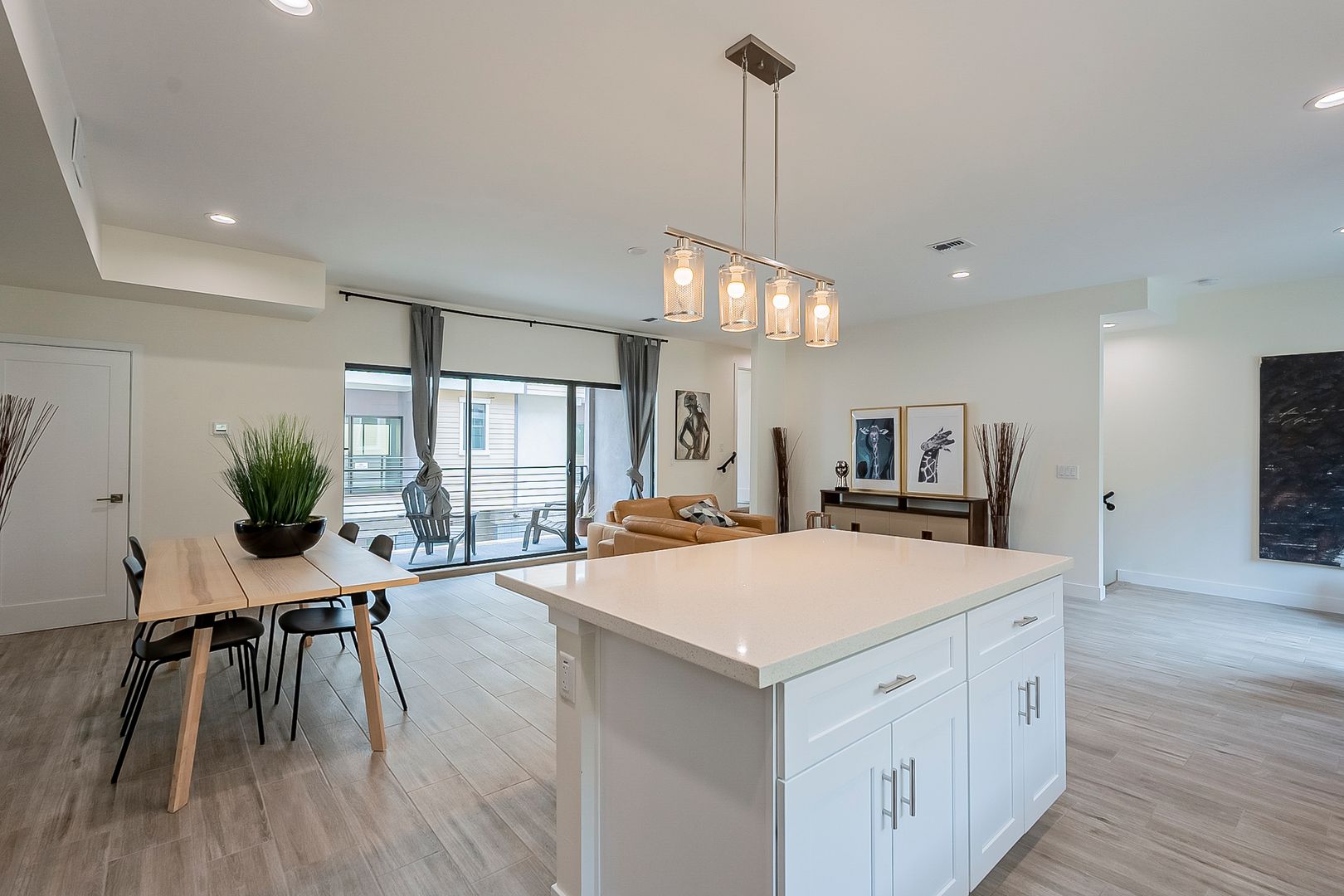 2nd level has an Eat-in kitchen with beautiful quartz counters, stainless steel appliances, a gas stove, a large pantry, and plenty of cabinet space. The dining room and living easy have easy access to a private balcony.